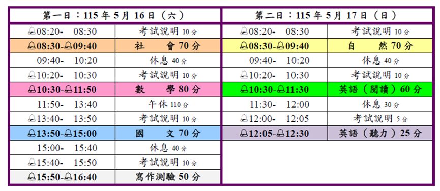 【115會考】115年國中會考考試時間表